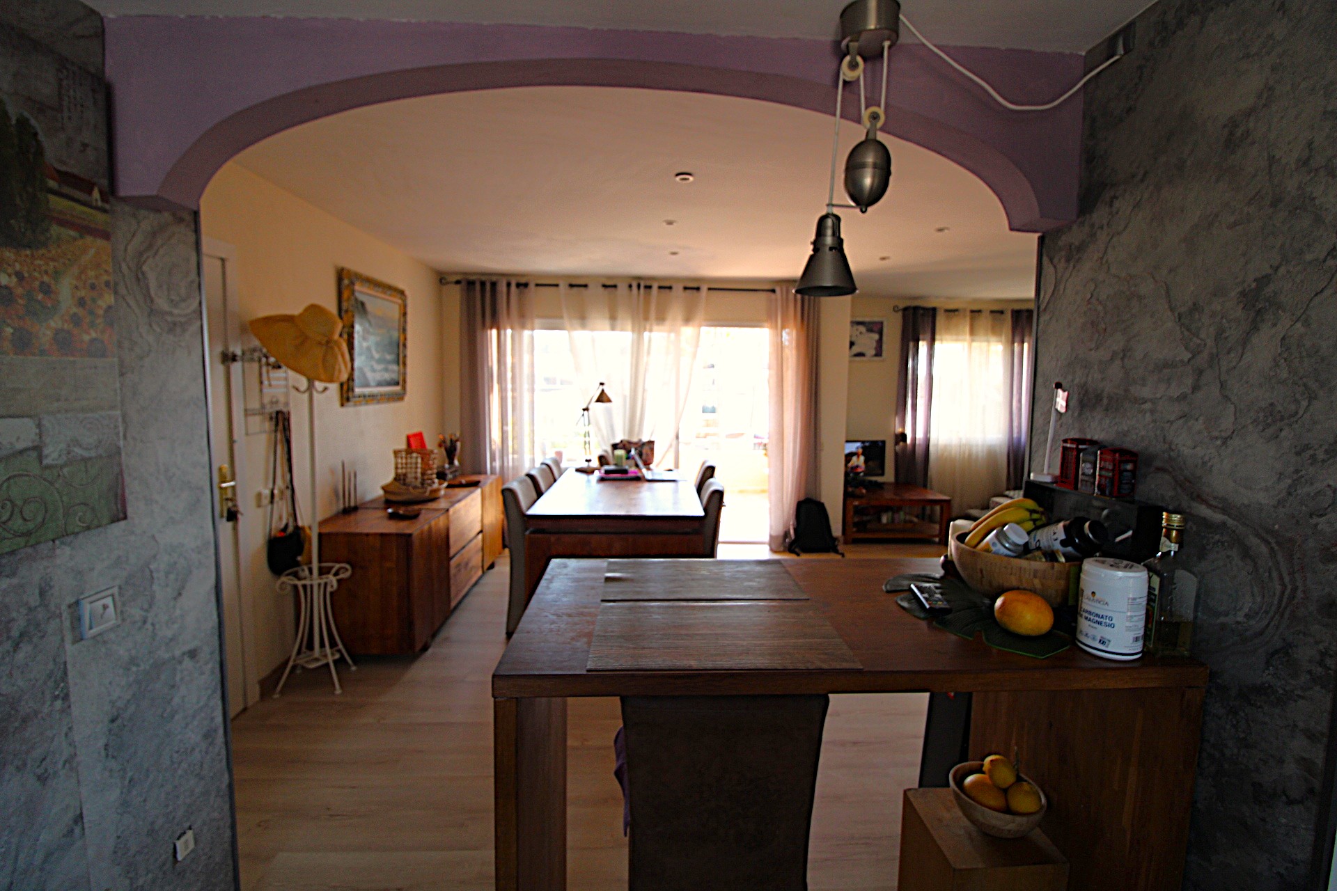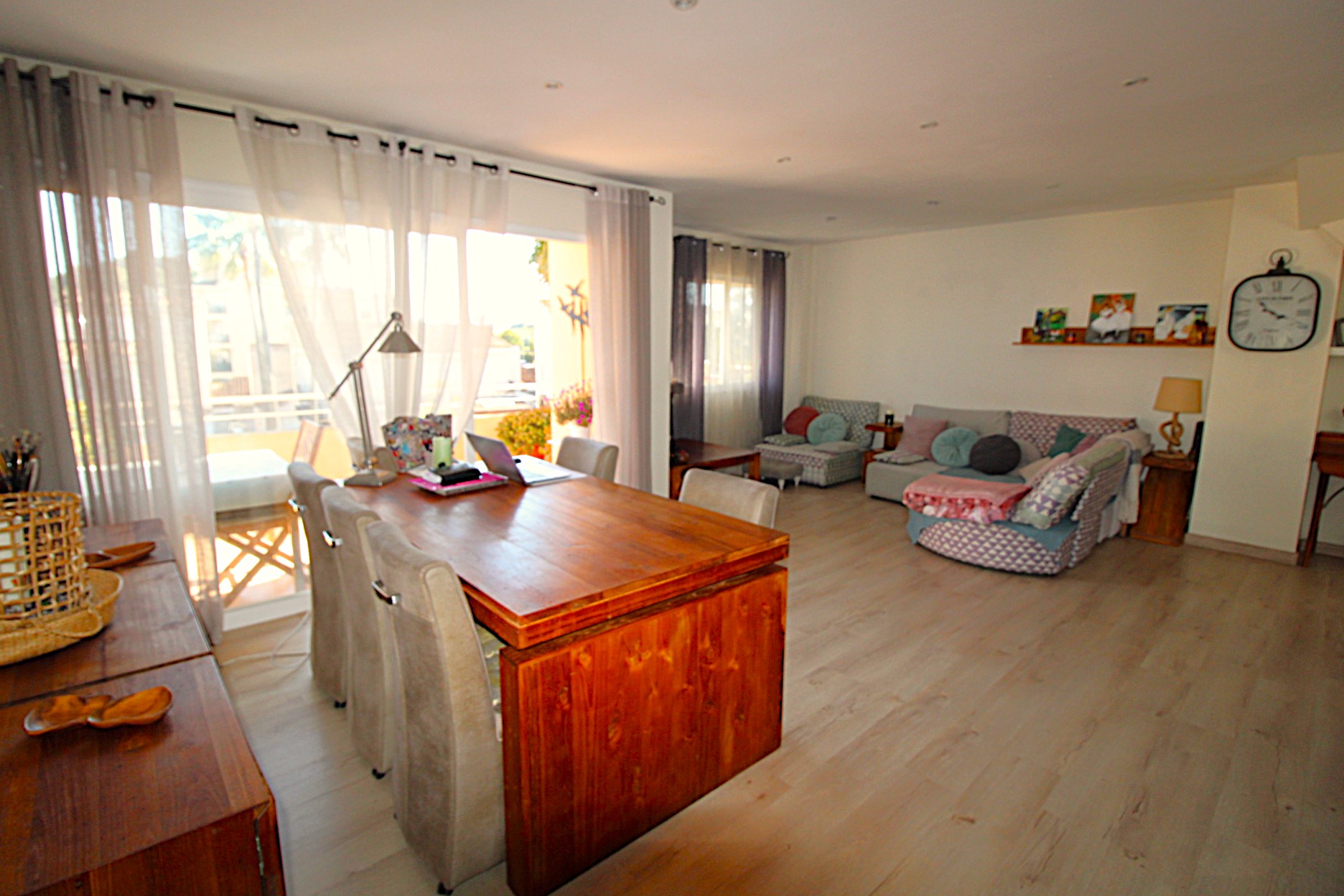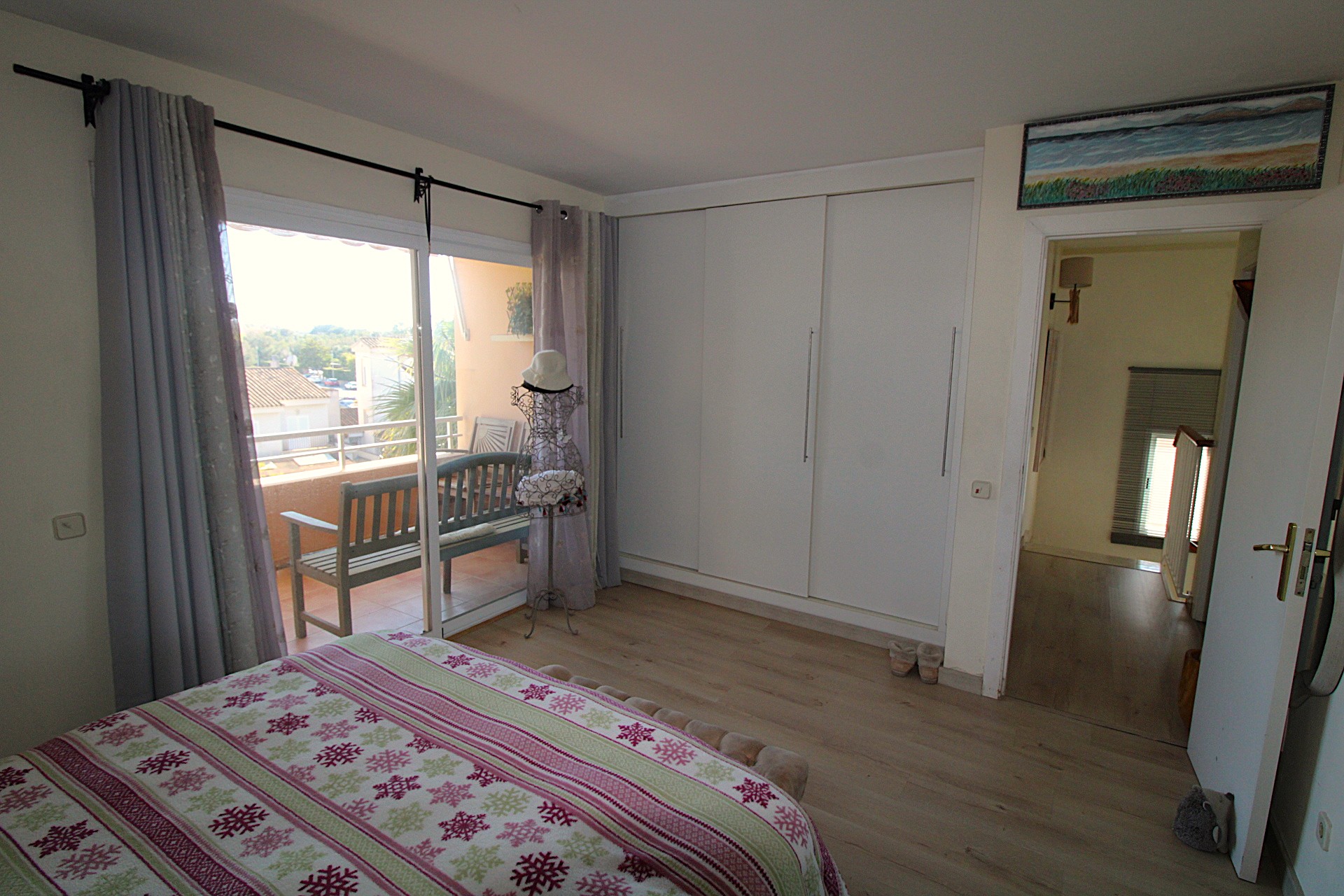Fantastic duplex penthouse for sale in Maioris. It comprises a living-dining room, a fitted open-plan kitchen and a utility room, with access to a terrace overlooking the communal pool and garden. On the upper floor are two double bedrooms with fitted wardrobes, two bathrooms (one en suite), access to a terrace, and from there access to a sun terrace with superb unobstructed views. The property faces south and is very bright. It features parquet flooring, double glazing, pre-installation for air conditioning, a video intercom, etc. The building has a lift. Communal swimming pool and garden. A 10-minute walk from the sea.